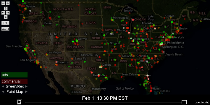 Have a look at the data yourself with the Superbowl Twitter Visualization !