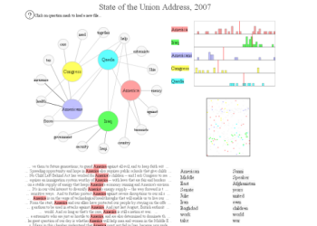 Clustered Word Clouds are an extension of the common word cloud idea. The words are partitioned into clusters based on how often they were used near each other in the base text. The largest clusters are then shown with the words in them positioned near each other and highlighted with color. |